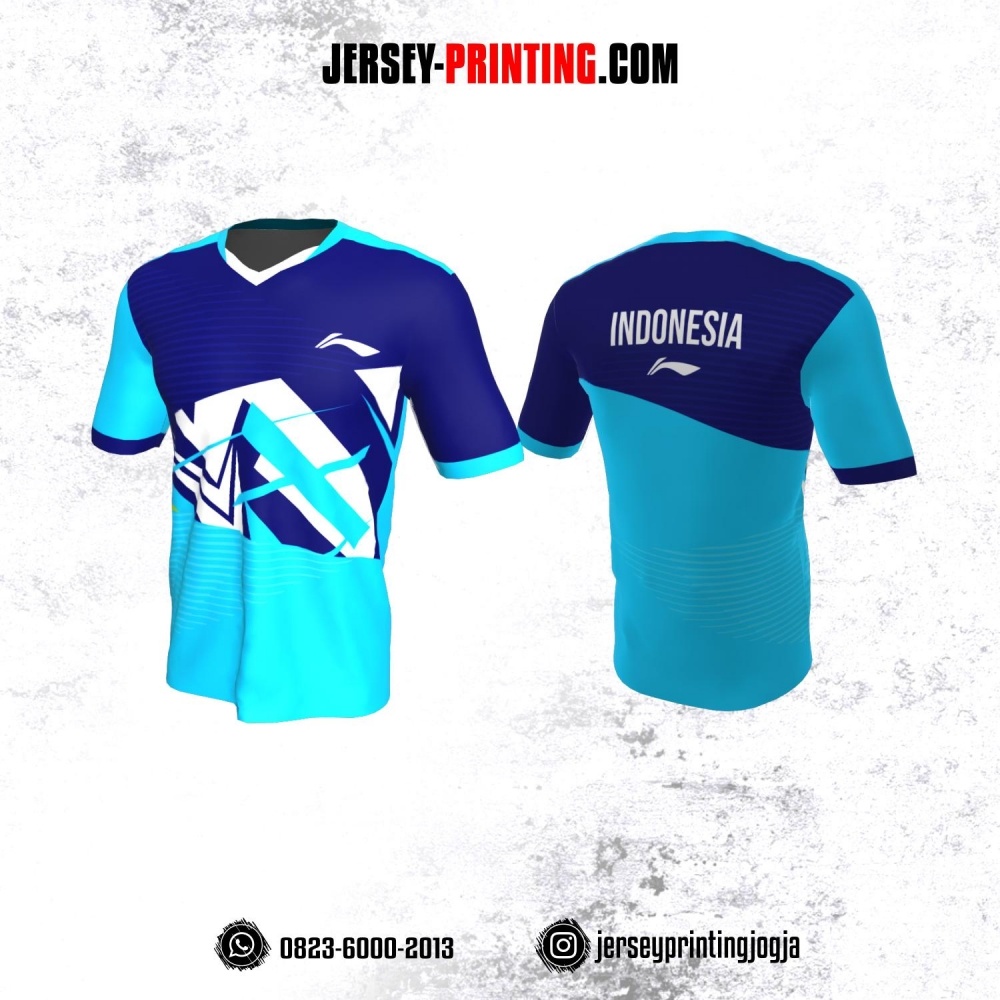 Jersey Badminton Biru Navy Putih Motif Abstrak