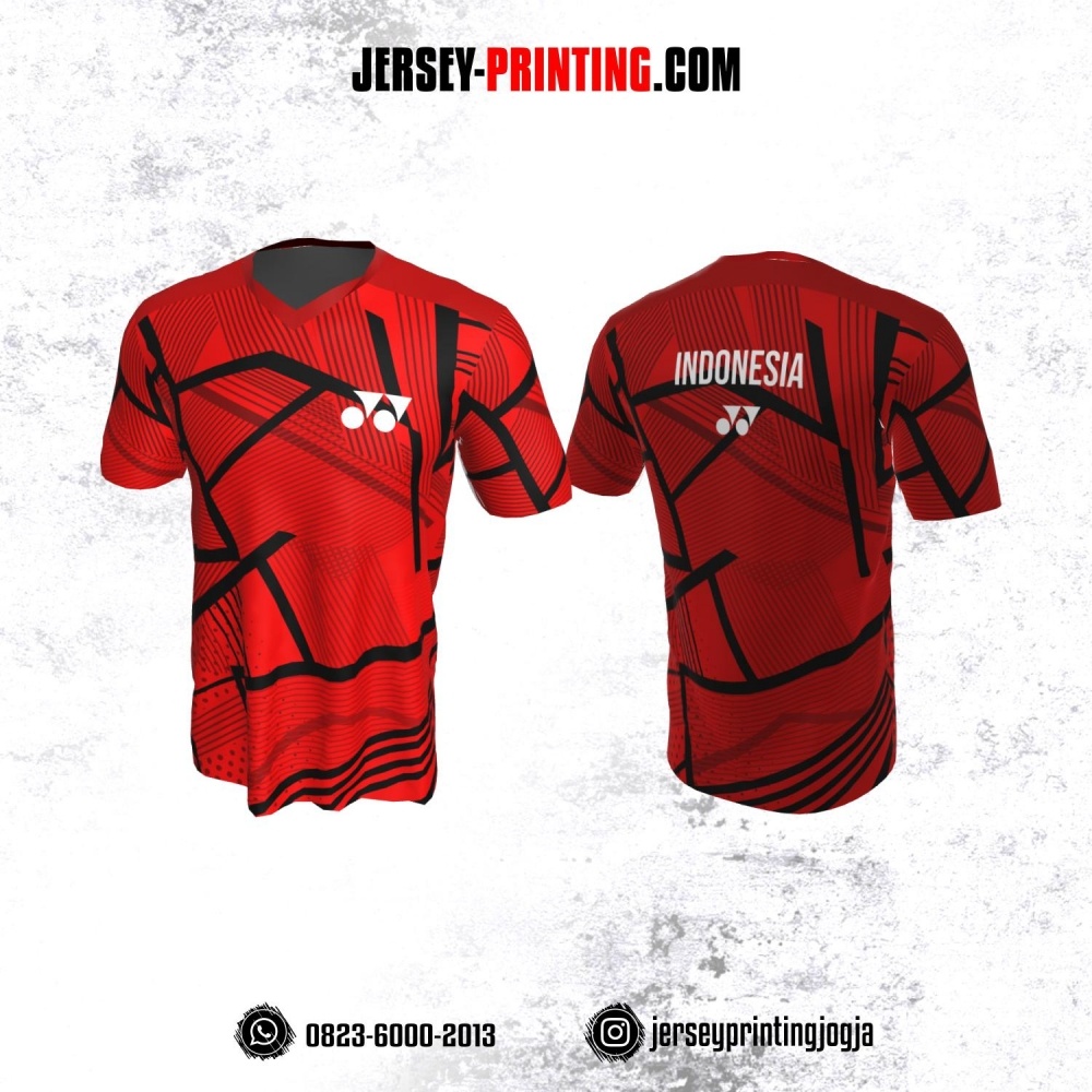 Jersey Badminton Merah Hitam Motif Garis Abstrak