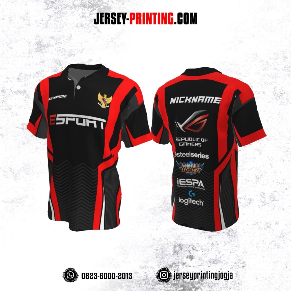Jersey Gaming Esports Kerah Polo Hitam Merah Motif Zigzag Abu-abu