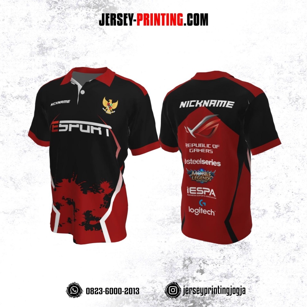 Jersey Gaming Esports Kerah Polo Hitam Merah Putih Motif Splash Tinta