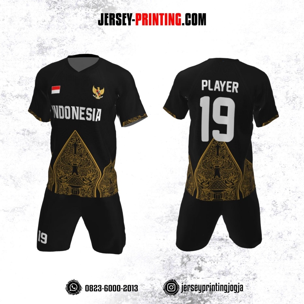 Jersey Futsal Hitam Corak Gunungan Wayang Gold
