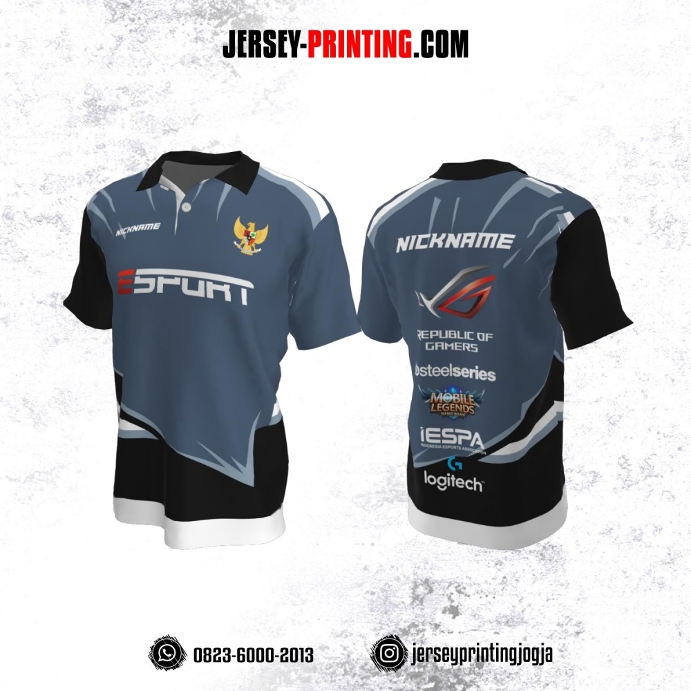 Jersey Gaming Esports Kerah Polo Abu-abu Corak Hitam Putih