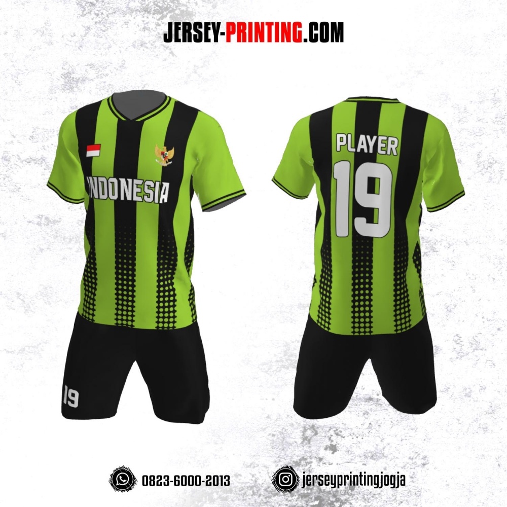 Jersey Futsal Hijau Motif Strip Polkadot Hitam