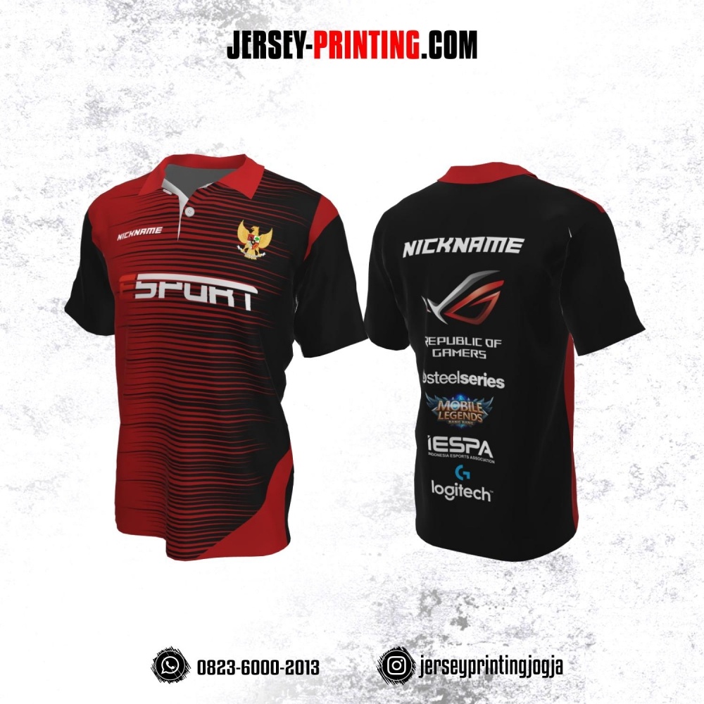 Jersey Gaming Esports Kerah Polo Hitam Merah Motif Garis