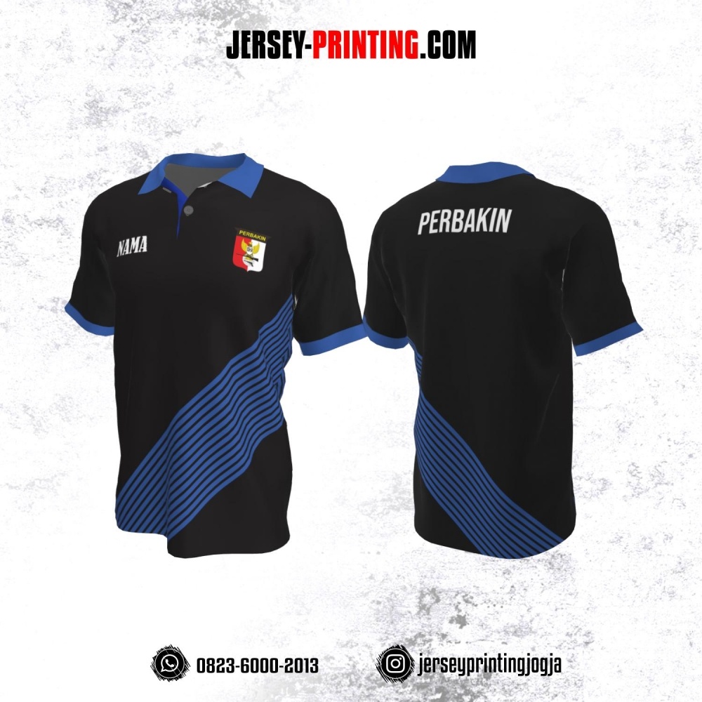 Baju Kaos Jersey Menembak Perbakin Kerah Polo Hitam Motif Stripe Biru
