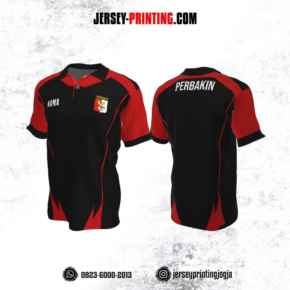 Baju Kaos Jersey Menembak Perbakin Kerah Polo Hitam Merah Motif Garis