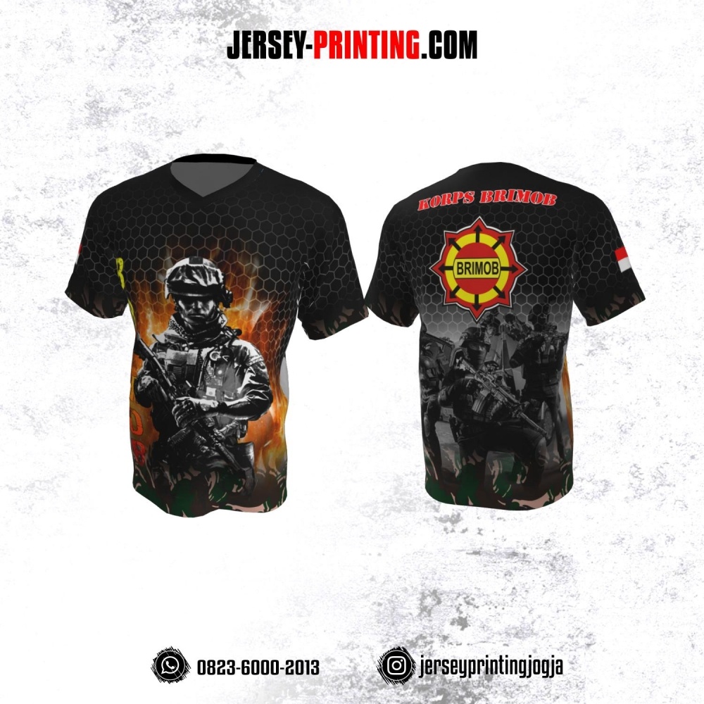 Jersey Polisi Brimob Hitam Orange Motif Honeycomb