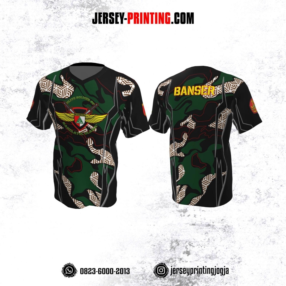 Jersey Militer Army Tentara TNI Hitam Hijau Putih Motif Abstrak