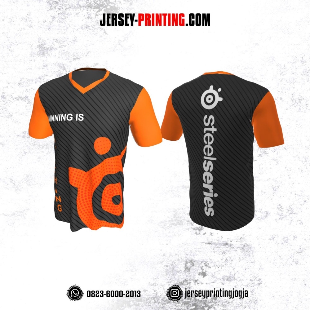Jersey Gaming Esports Abu-abu Orange Motif Stripe Diagonal Hitam