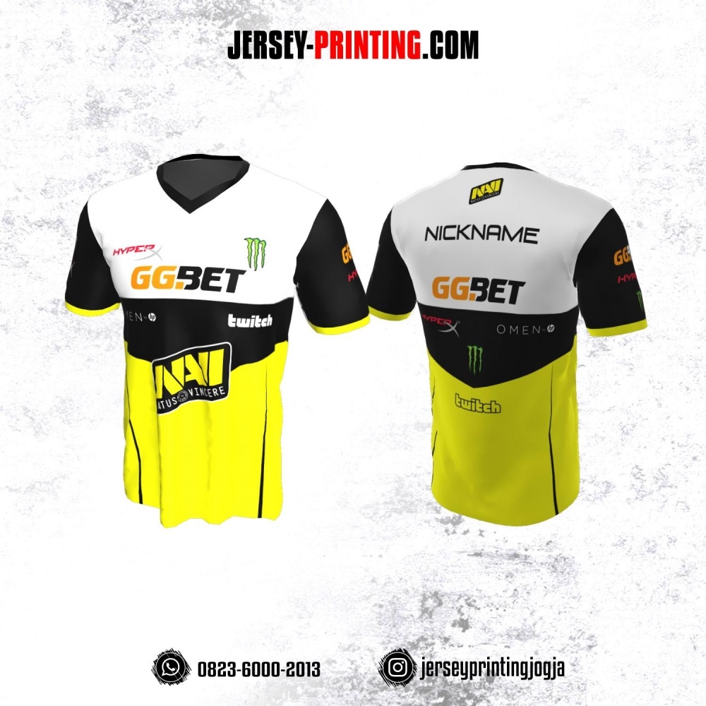 Jersey Gaming Esports Kuning Corak Putih Hitam