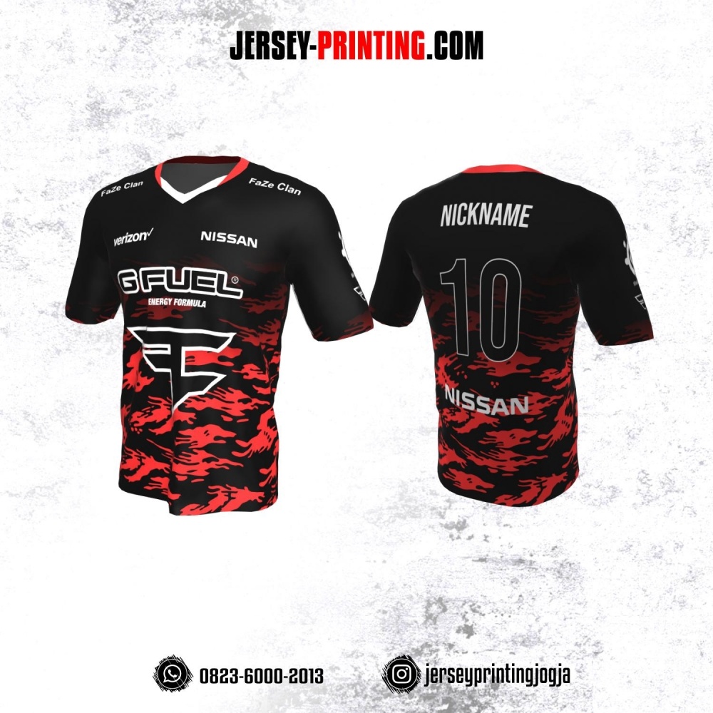 Jersey Gaming Esports Hitam Motif Abstrak Merah