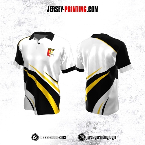 Jersey Gaming Esports Kerah Polo Putih Corak Hitam Kuning