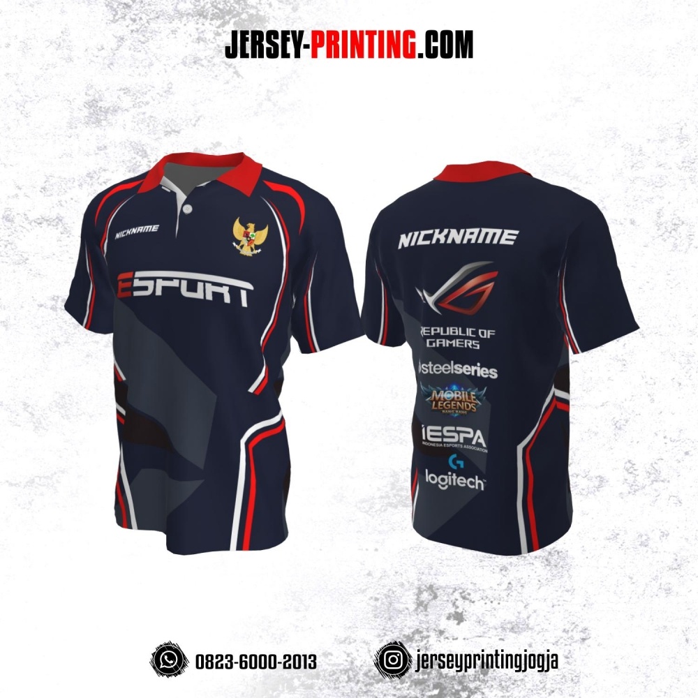 Jersey Gaming Esports Kerah Polo Dongker Garis Merah Putih