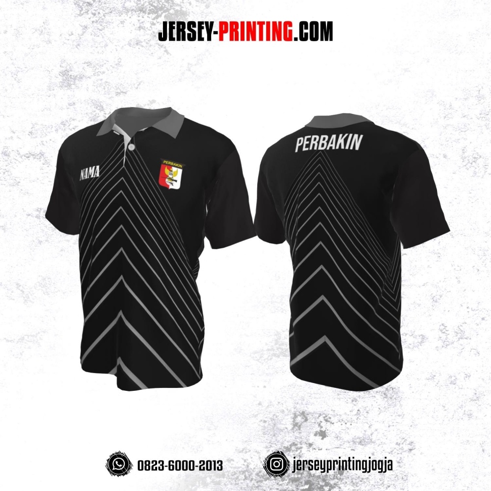 Baju Kaos Jersey Menembak Perbakin Kerah Polo Hitam Motif Garis Abu-abu