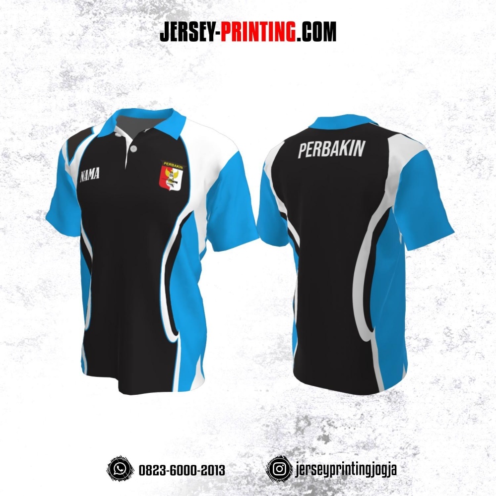 Baju Kaos Jersey Menembak Perbakin Kerah Polo Hitam Corak Biru Putih
