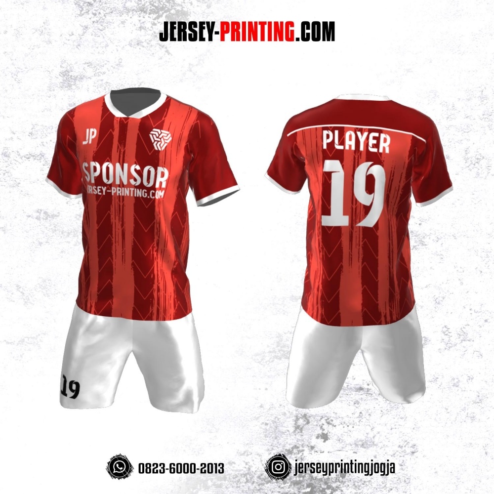 Jersey Futsal Merah Putih Motif Brush dan Zigzag