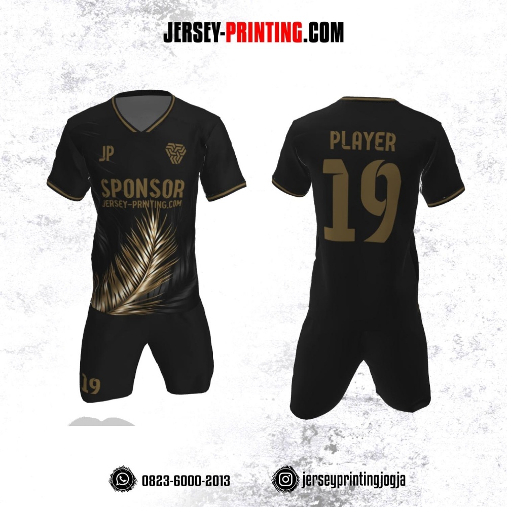 Jersey Futsal Hitam Motif Daun Emas