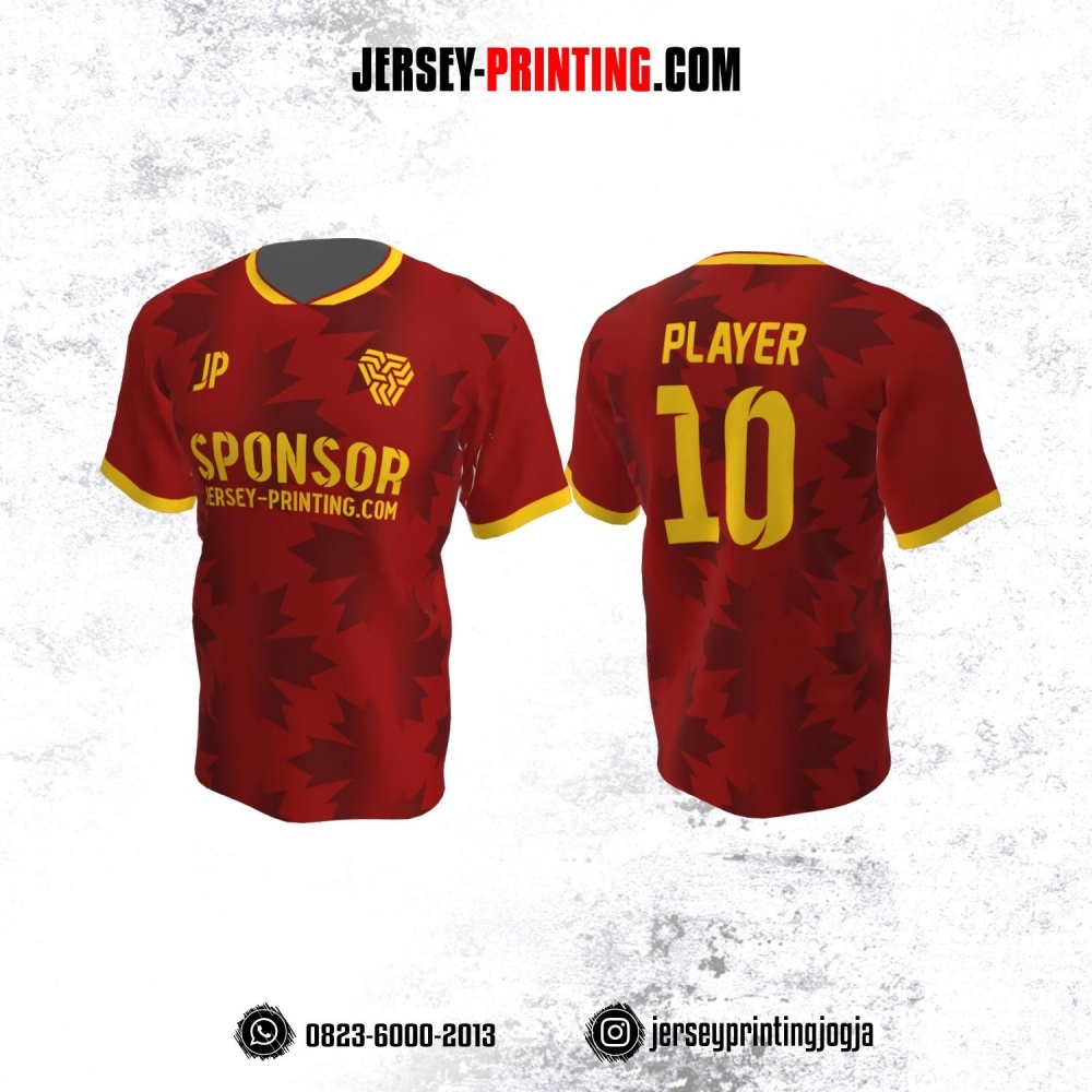 Jersey Atasan Badminton Volly Lari Futsal Merah Maroon Kuning Motif Daun