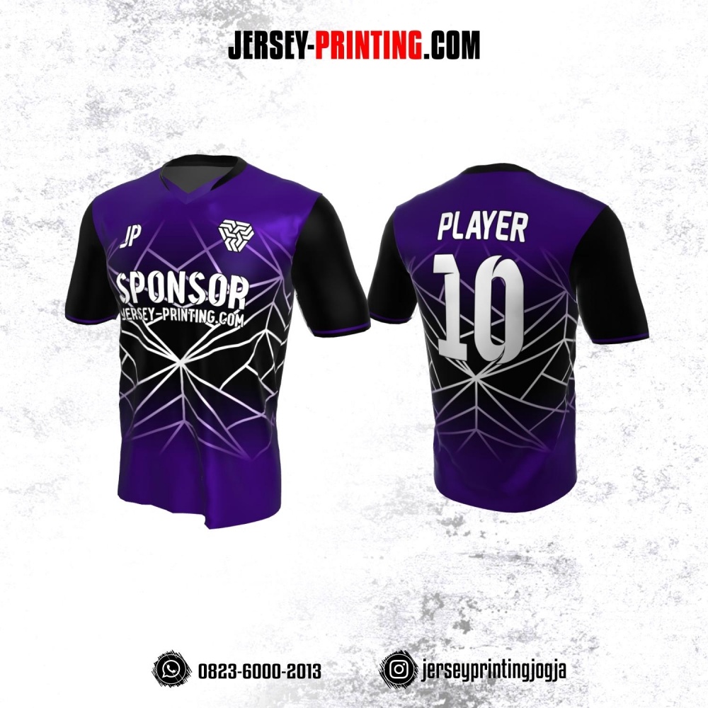 Jersey Atasan Badminton Volly Lari Futsal Hitam Ungu Motif Garis Abstrak Putih