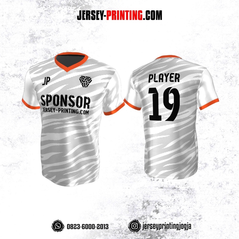 Jersey Atasan Badminton Volly Lari Futsal Putih Abu-abu Orange Motif Loreng