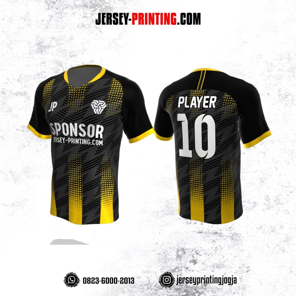 Jersey Atasan Badminton Volly Lari Futsal Hitam Abu-abu Motif Strip dan Polkadot Kuning