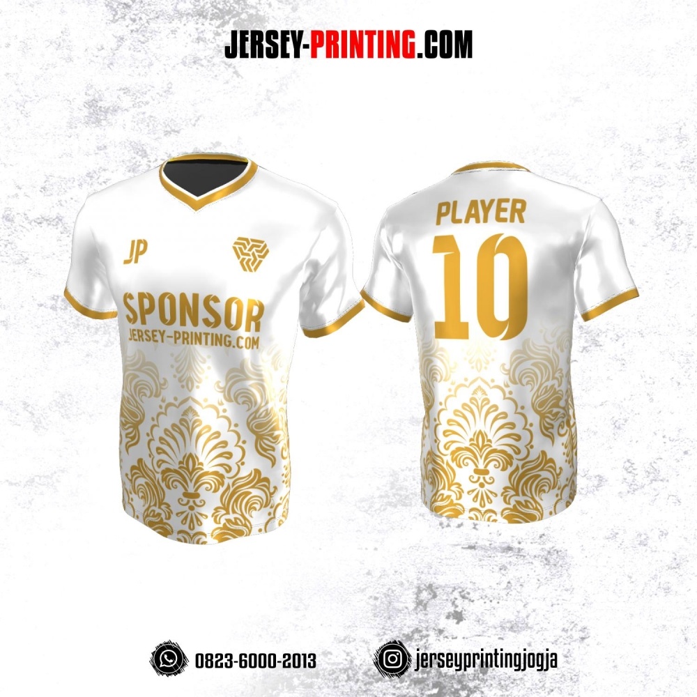 Jersey Atasan Badminton Volly Lari Futsal Putih Motif Batik Emas