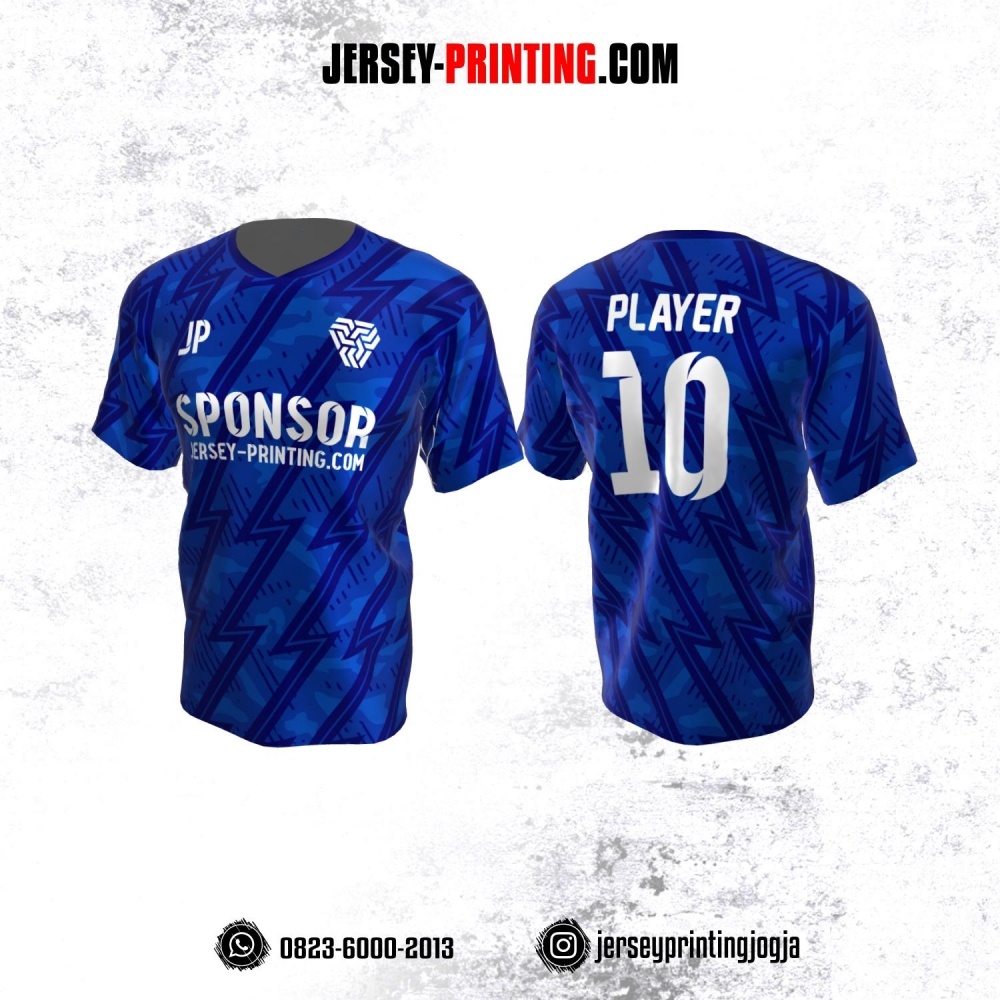Jersey Atasan Badminton Volly Lari Futsal Biru Navy Motif Kilat