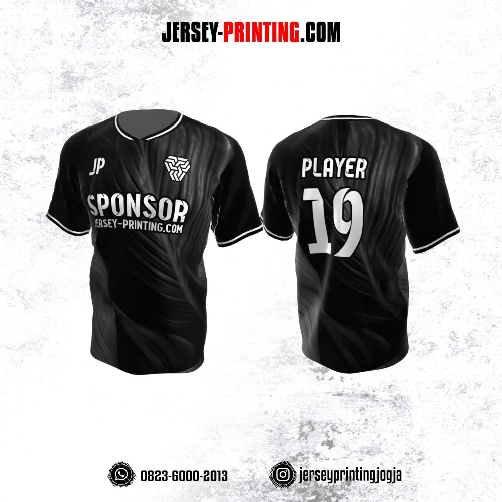 Jersey Atasan Badminton Volly Lari Futsal Hitam Motif Daun Abu-abu