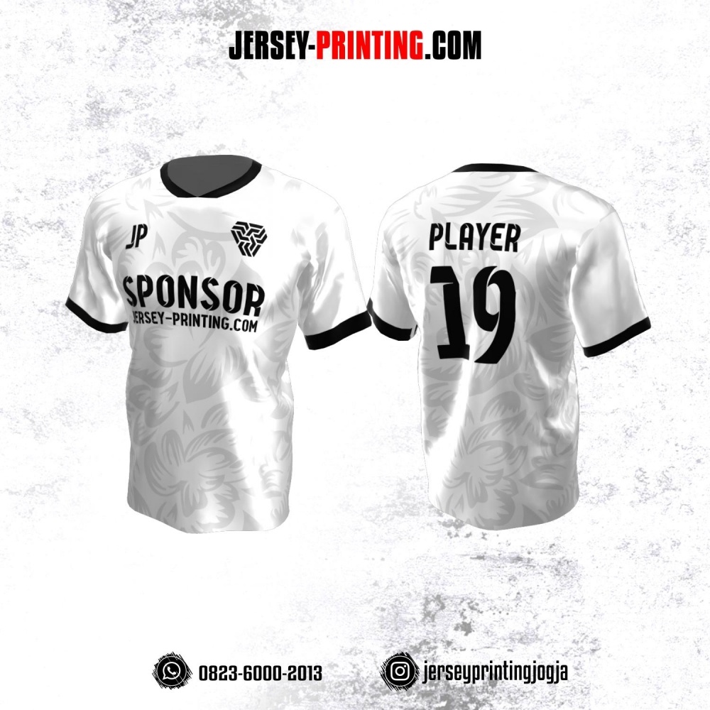 Jersey Atasan Badminton Volly Lari Futsal Putih Motif Floral Abu-abu