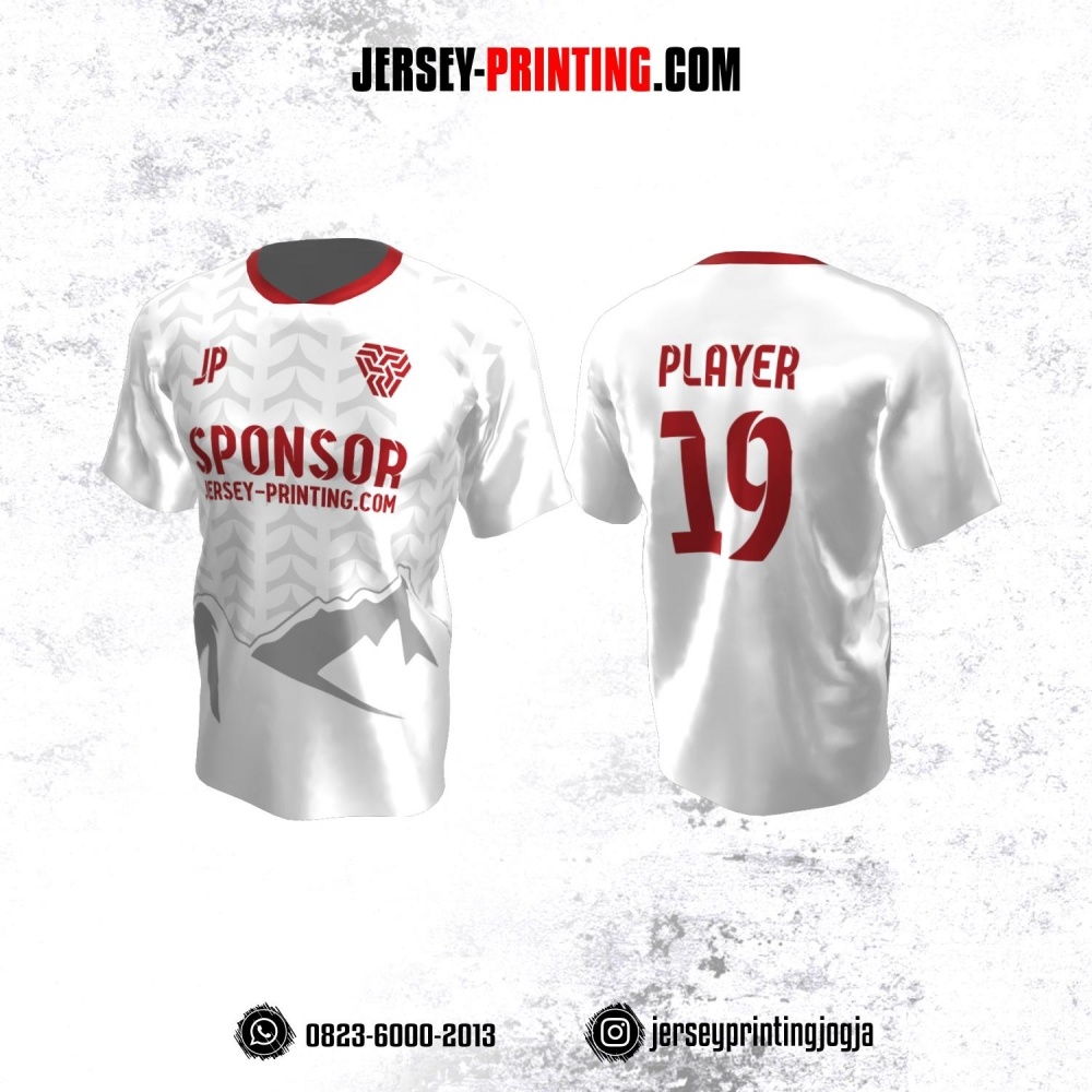 Jersey Atasan Badminton Volly Lari Futsal Putih Abu-abu Merah Motif Seamless