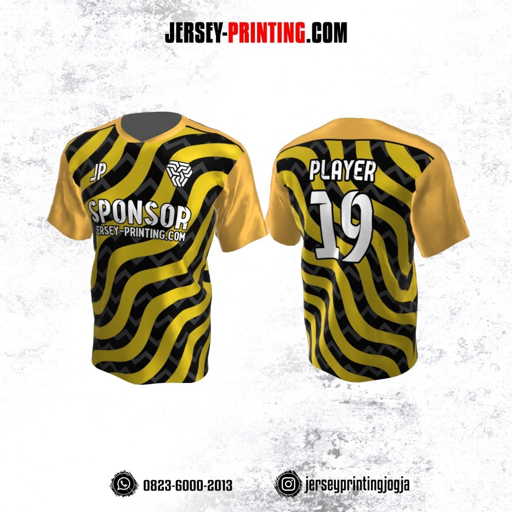 Jersey Atasan Badminton Volly Lari Futsal Kuning Hitam Motif Gelombang