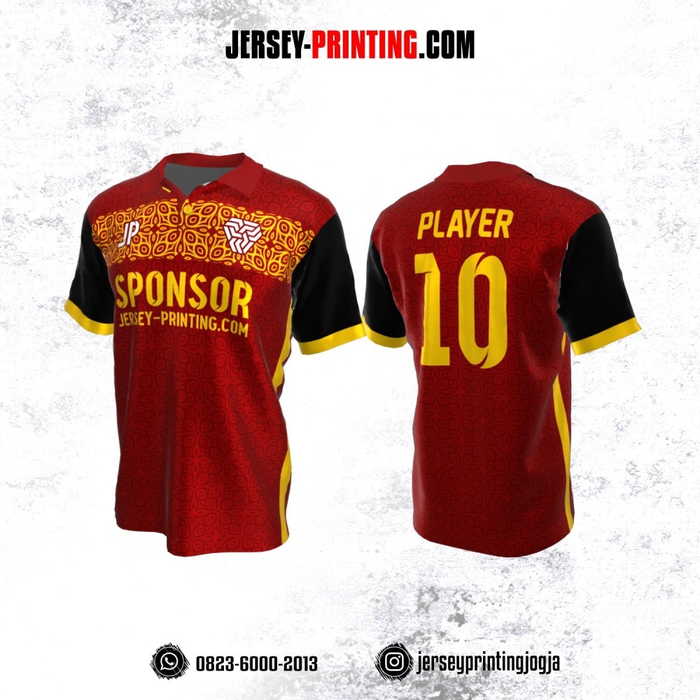 Jersey Atasan Badminton Volly Lari Futsal Merah Kuning Hitam Motif Batik