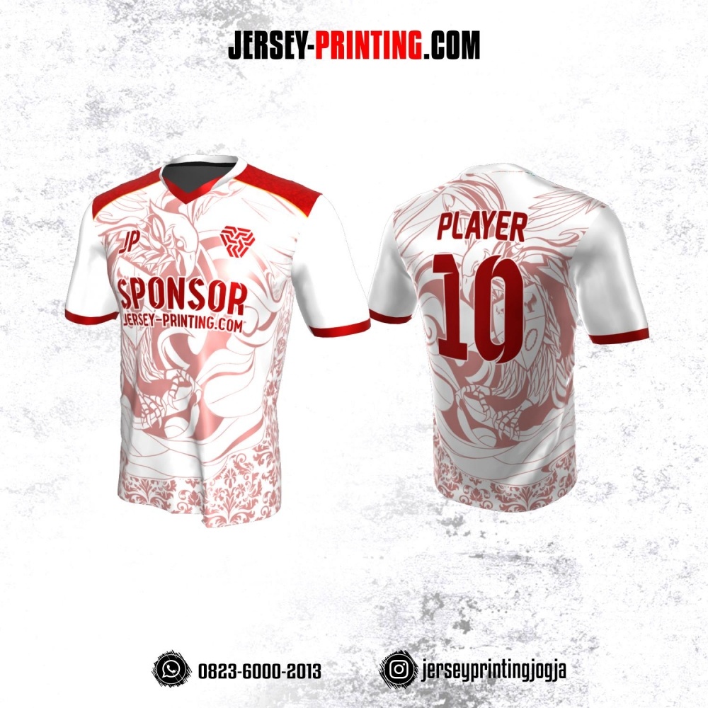 Jersey Atasan Badminton Volly Lari Futsal Putih Merah Motif Garuda dan Batik