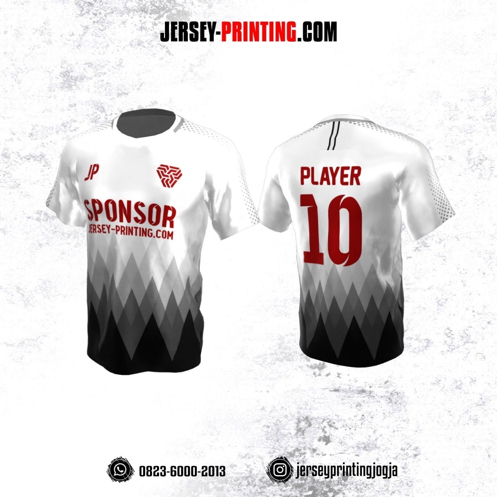 Jersey Atasan Badminton Volly Lari Futsal Putih Motif Zigzag Abu-abu Hitam