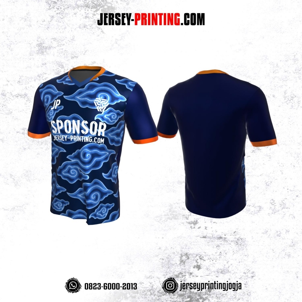 Jersey Atasan Badminton Volly Lari Futsal Navy Motif Batik Megamendung Biru