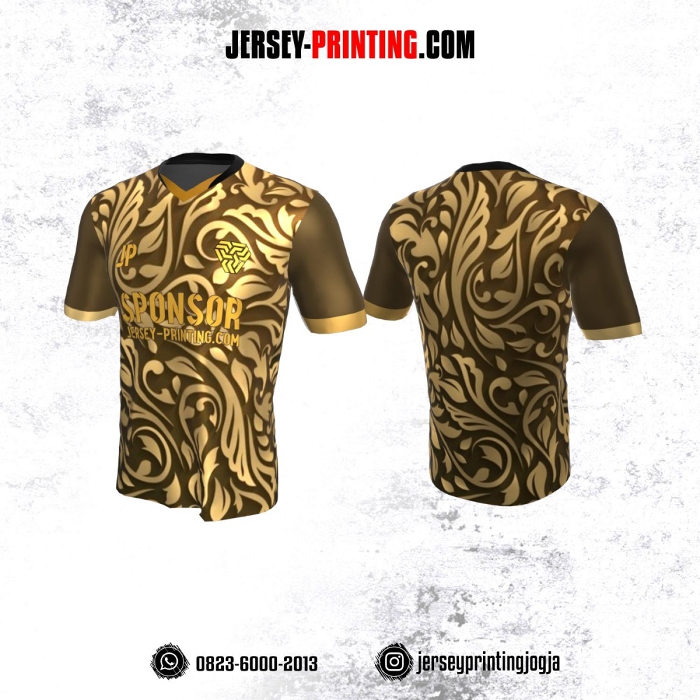 Jersey Atasan Badminton Volly Lari Futsal Coklat Motif Batik Krem