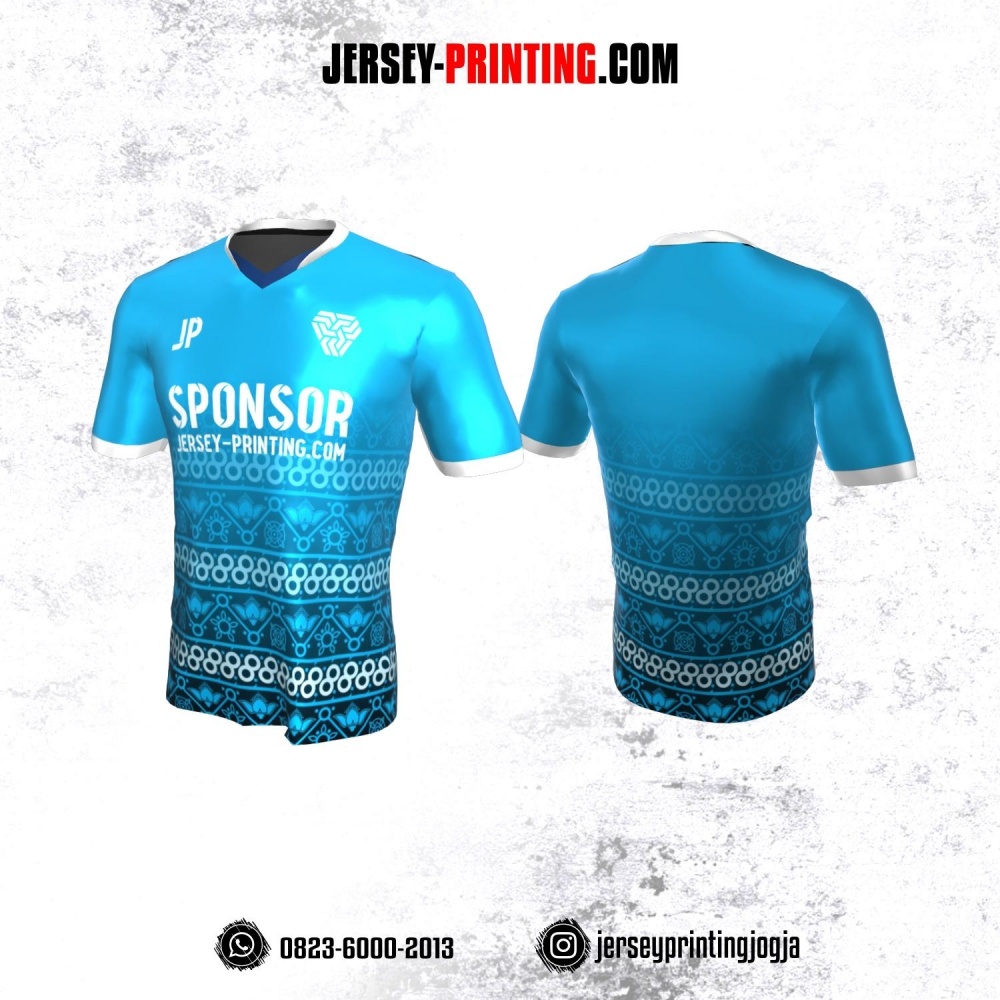 Jersey Atasan Badminton Volly Lari Futsal Biru Putih Motif Batik Geblek Renteng