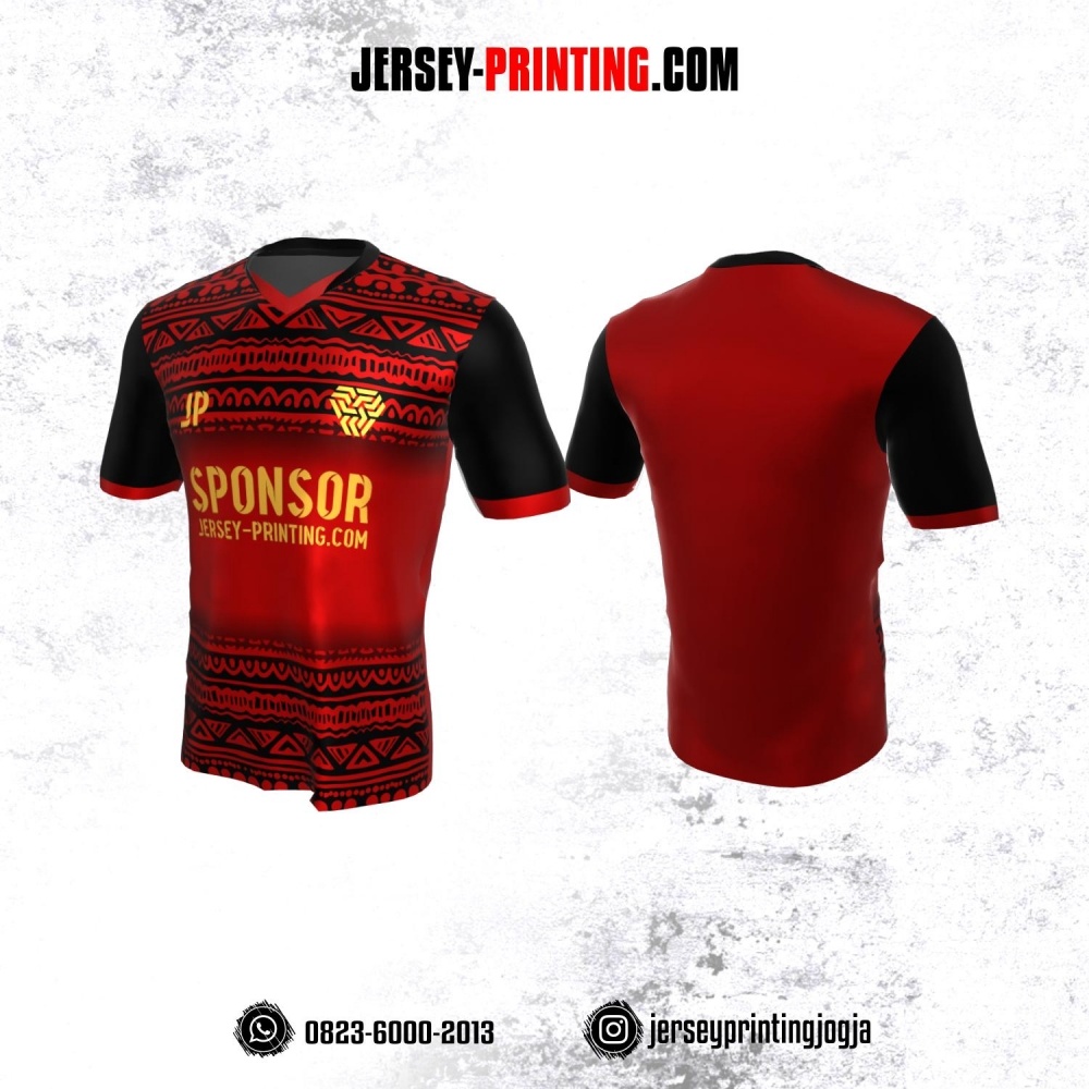 Jersey Atasan Badminton Volly Lari Futsal Merah Hitam Motif Batik