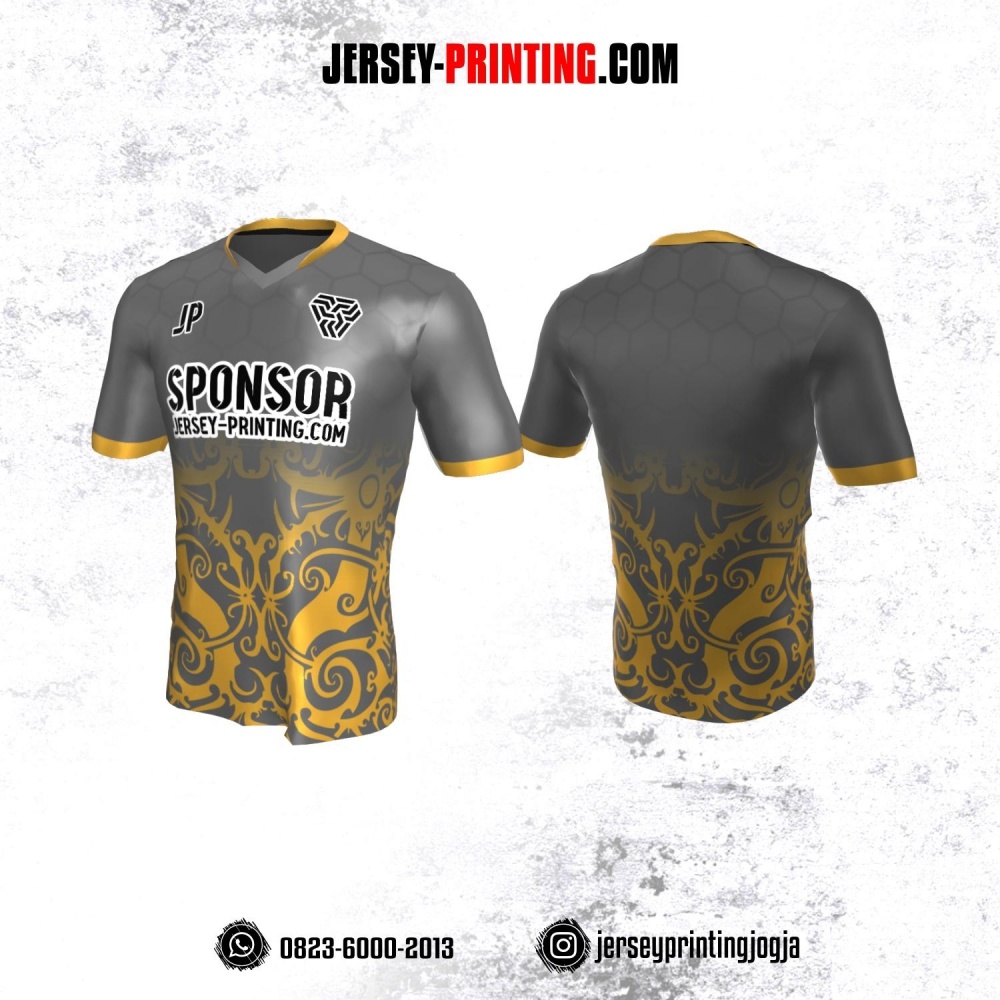 Jersey Atasan Badminton Volly Lari Futsal Abu-abu Motif Batik Kuning