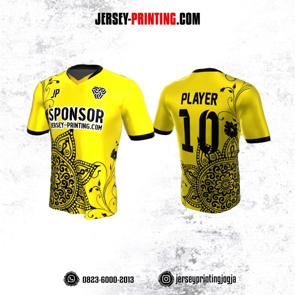Jersey Atasan Badminton Volly Lari Futsal Kuning Motif Floral Hitam