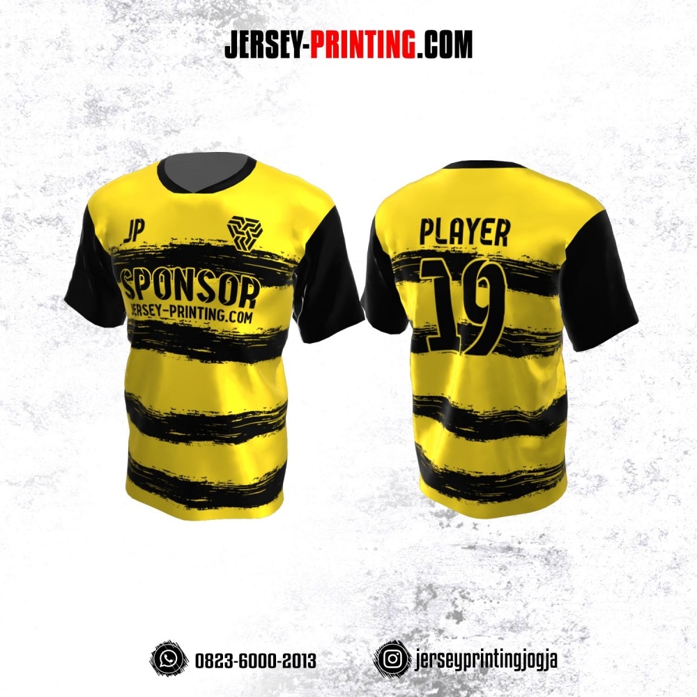 Jersey Atasan Badminton Volly Lari Futsal Kuning Motif Brush Hitam