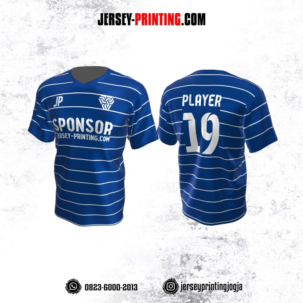 Jersey Atasan Badminton Volly Lari Futsal Biru Motif Stripe Putih