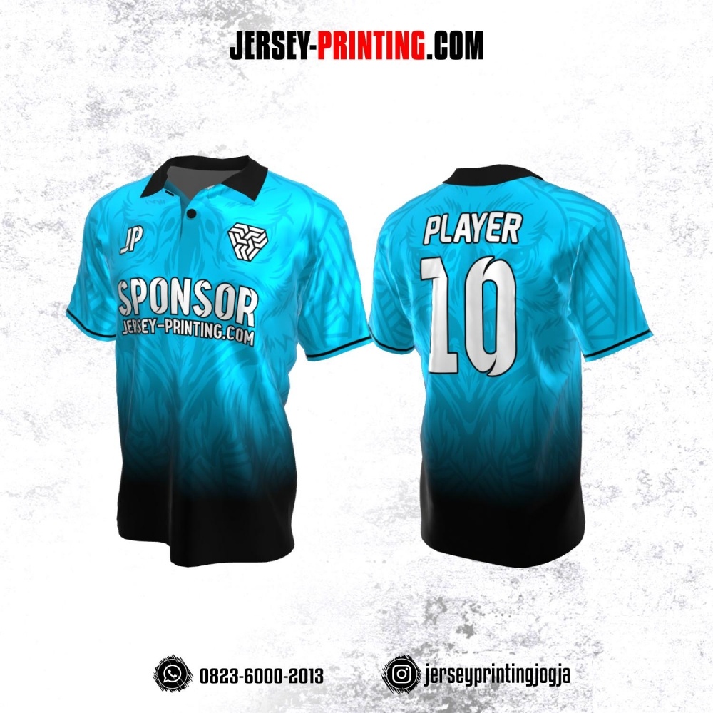 Jersey Atasan Badminton Volly Lari Futsal Kerah Polo Biru Hitam Motif Burung Elang