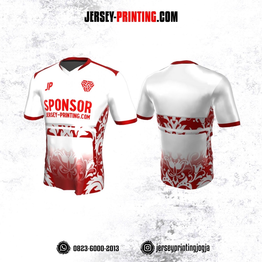 Jersey Atasan Badminton Volly Lari Futsal Putih Merah Motif Batik Floral