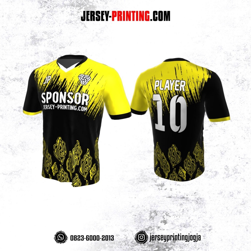 Jersey Atasan Badminton Volly Lari Futsal Hitam Motif Batik Megamendung Kuning
