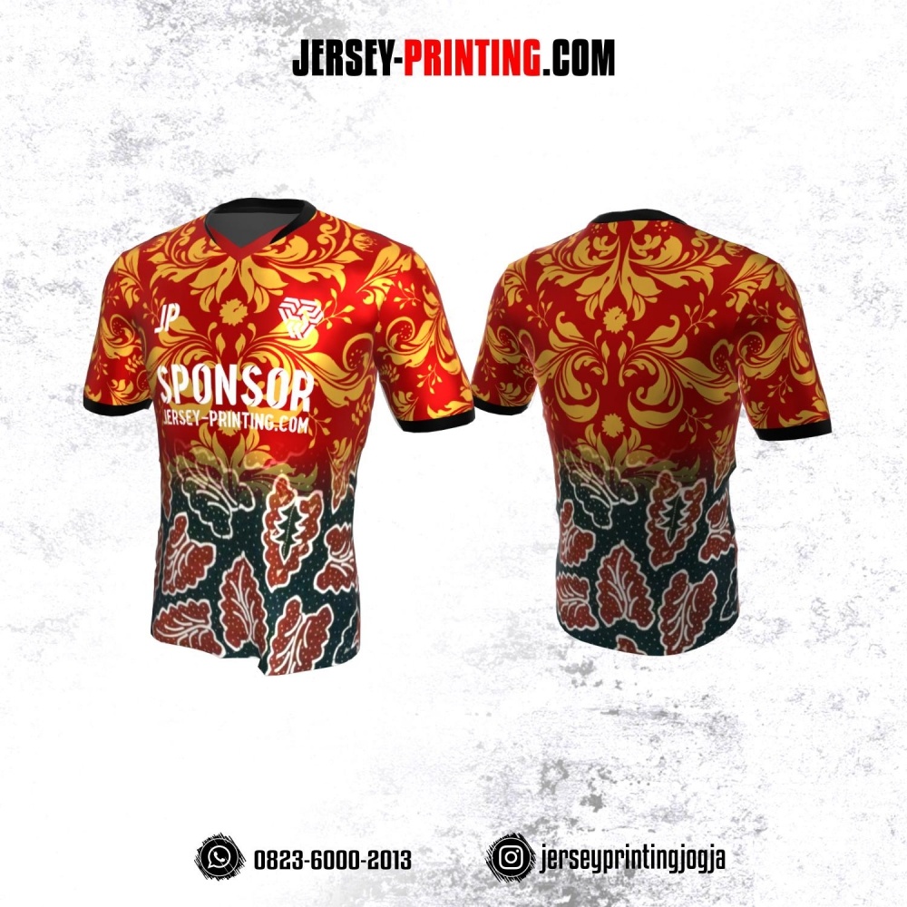 Jersey Atasan Badminton Volly Lari Futsal Merah Kuning Hitam Motif Batik