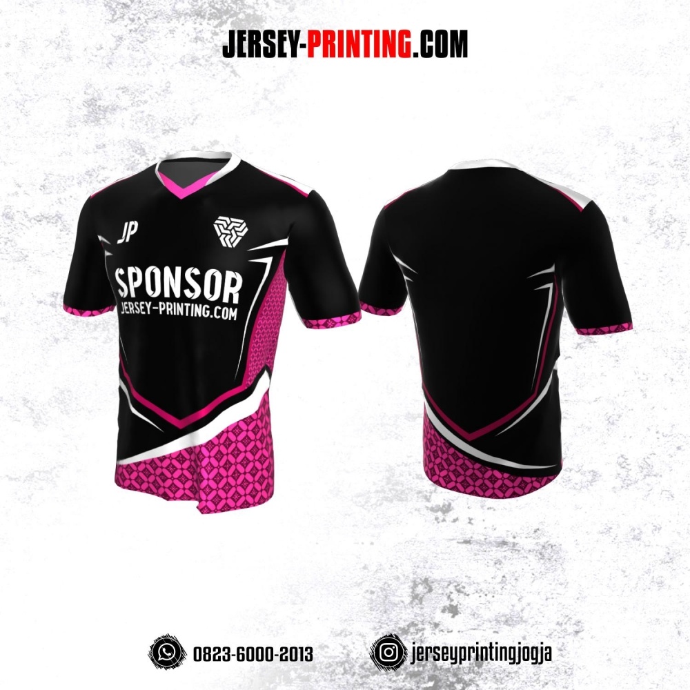 Jersey Atasan Badminton Volly Lari Futsal Hitam Pink Putih Motif Batik