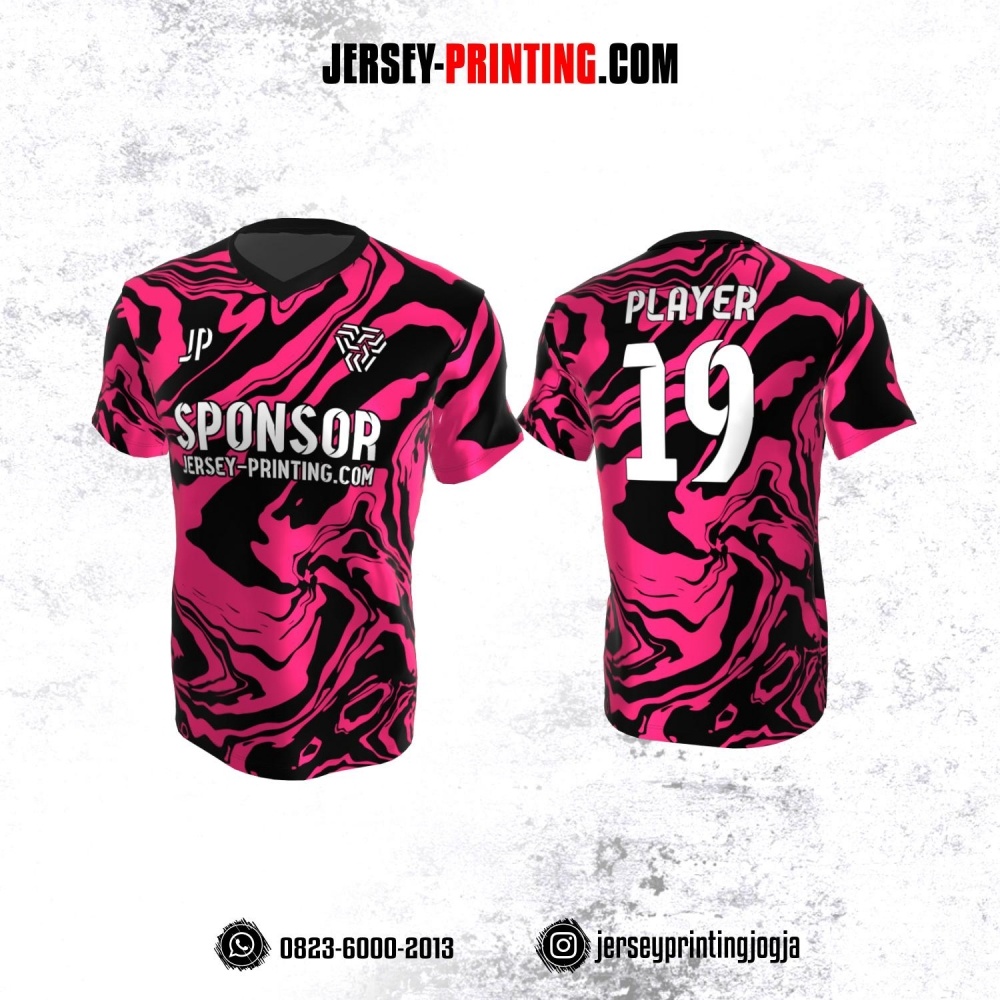 Jersey Atasan Badminton Volly Lari Futsal Motif Abstrak Pink Hitam