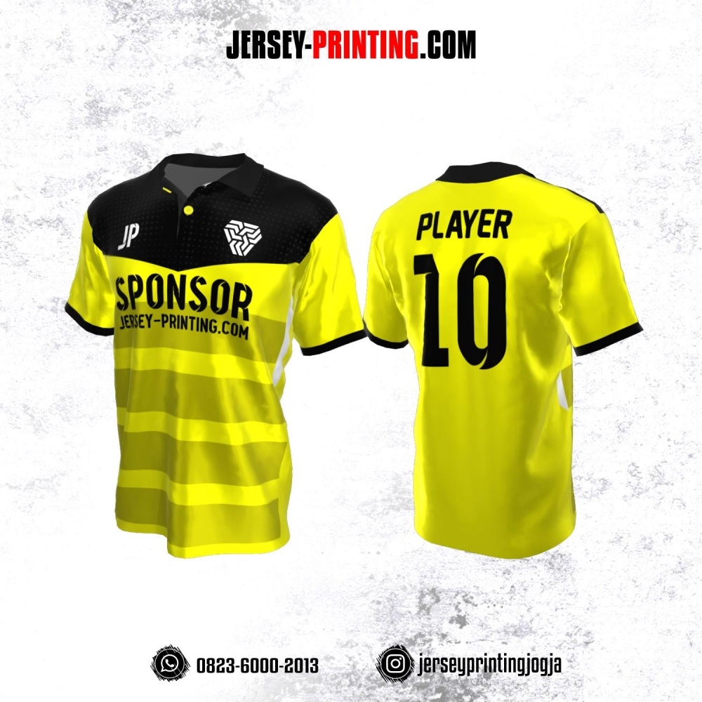 Jersey Atasan Badminton Volly Lari Futsal Kerah Polo Kuning Corak Hitam