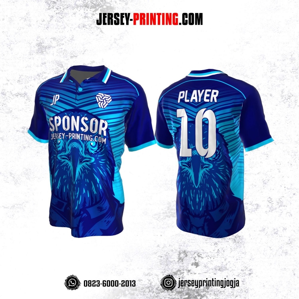 Jersey Atasan Badminton Volly Lari Futsal Navy Biru Motif Burung Elang